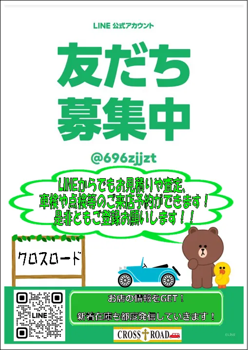 LINE公式アカウントでは新着在庫やキャンペーン情報のご提供、そしてご来店予約や査定予約等を承っております。ぜひご登録をお願いいたします!